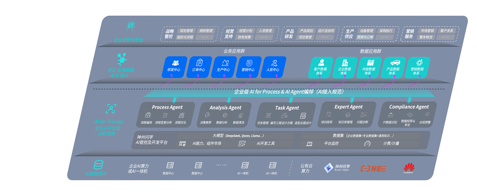 端到端的一站式AI工作空间深度融合了从企业战略规划到日常经营的全流程业务板块,,,定向解决车企内部领域多、、、、部门多、、链条长、、、场景碎片化等难题,,,,支持车企快速构建以AI为核心的生产力写作体系,,实现任务执行与AI能力的无缝集成与交互